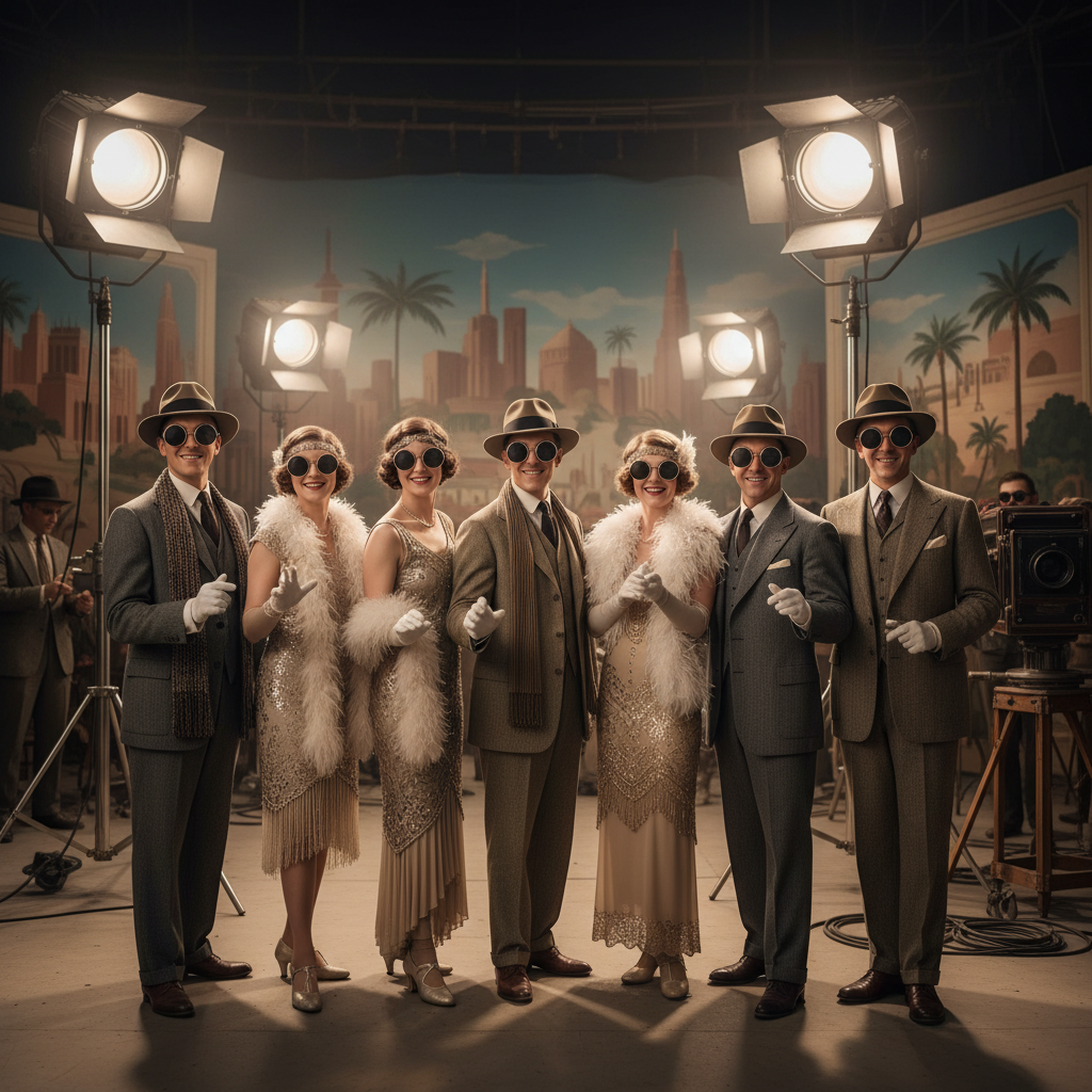 What’s the catch? The studio lights of the 1910s and 20s were rich in UV radiation and blindingly bright. “Klieg eyes,” a painful condition similar to welder’s burn, was a common occupational hazard. Dark glasses were personal protective equipment (PPE) for the Hollywood elite.